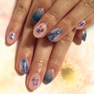 2016.6月定額コース(グラデーション(シースルーブルー+クラッシュシェル+星スタッズ))