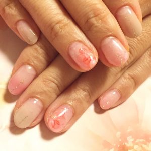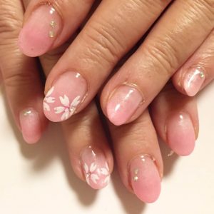 花びらが舞っているような、可愛いネイルに仕上がりました(^^)