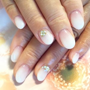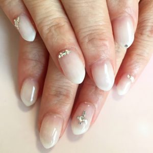 「ホワイトのネイル」とオーダーを頂いたので、シアーホワイトのカラーグラデーションをご提案させて頂きました。