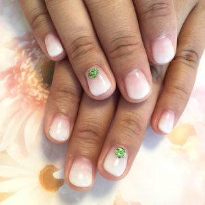 展示してあるサンプルを気にいって下さり「色使いはそのままで、フレンチをグラデーションでやりたい」とオーダーを頂きました。