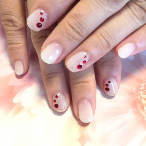 根元に少しスワロフスキーストーンをつけて、大人っぽくお上品なネイルに仕上がりました(^^)